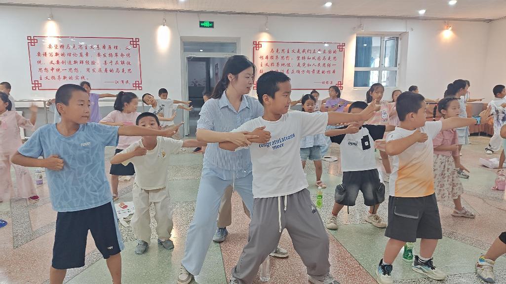 团队分成三个小组,分别前往天河社区、天湖社区和二十七团五连,聚焦青少年关爱和传统文化体验,为当地的孩子们带去了知识和欢乐。团队成员在天湖社区组织了八段锦教学。孩子们初步体验了传统健身功法,为孩子们增添了健康活力。