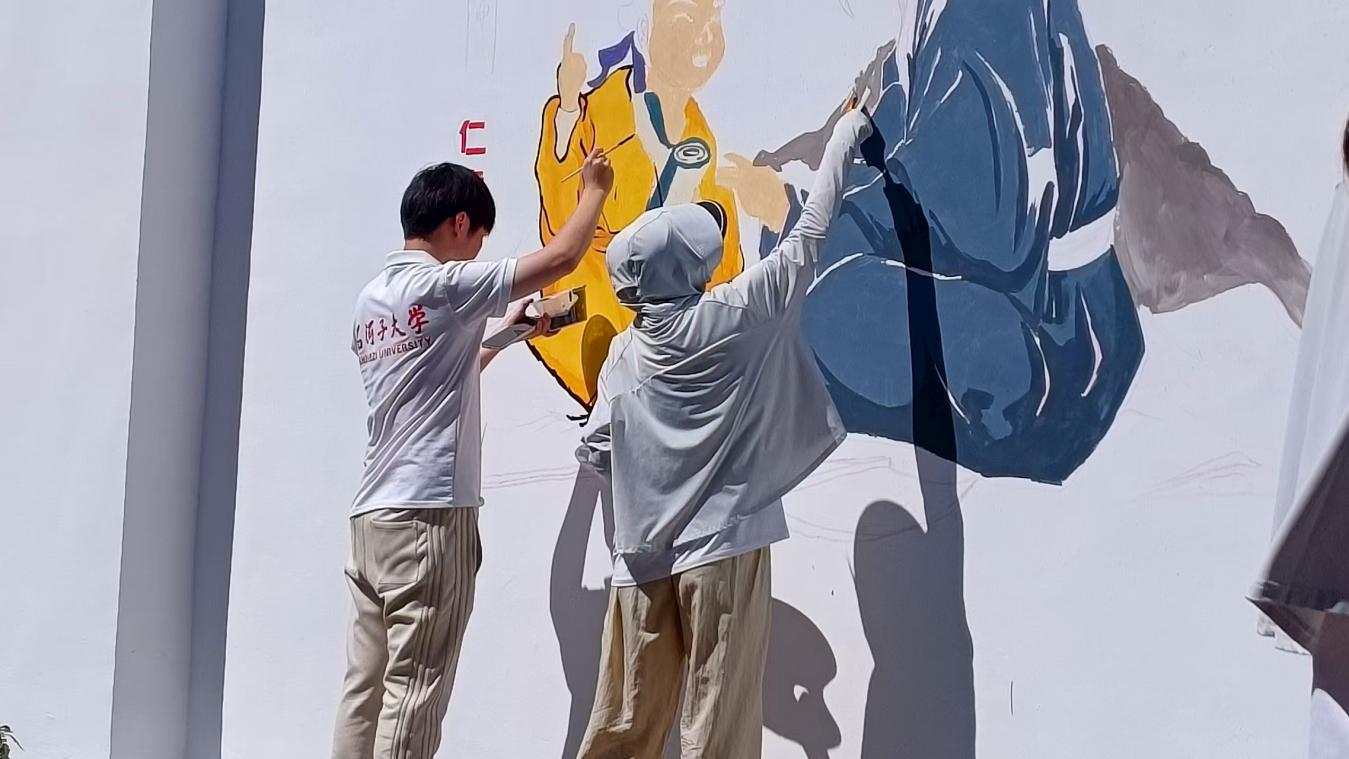 7月17日,石河子大学文学艺术学院赴第六师奇台县奇台农场“同心同绘”中华文化传承社会实践团于农六师奇台农场进行一系列以“中华传统美德”为主题的墙绘制作实践。