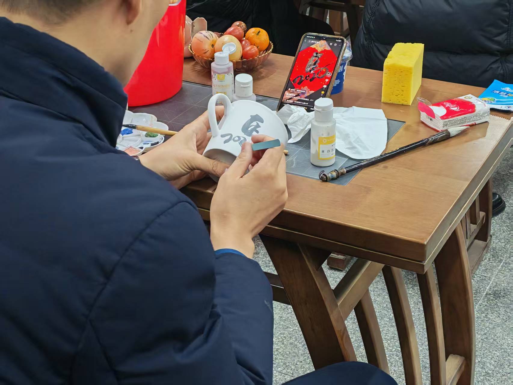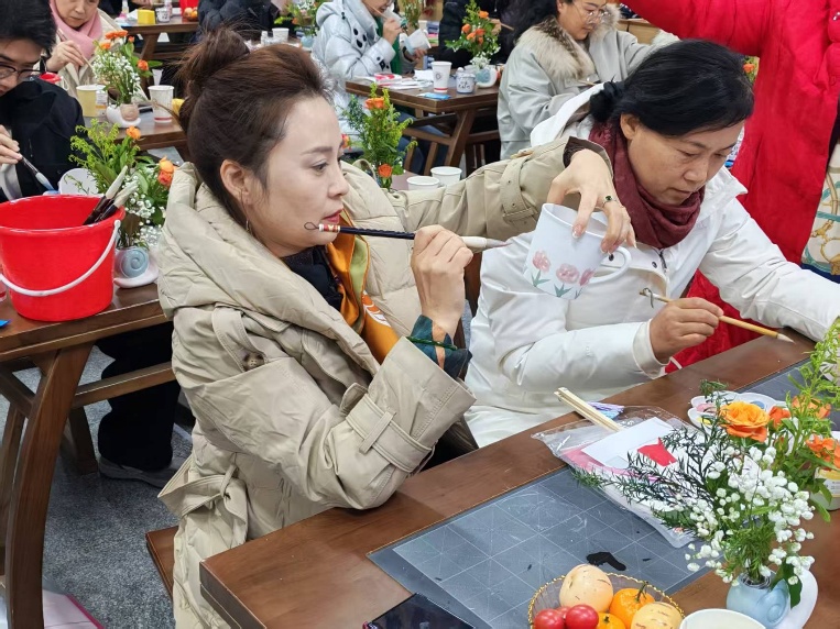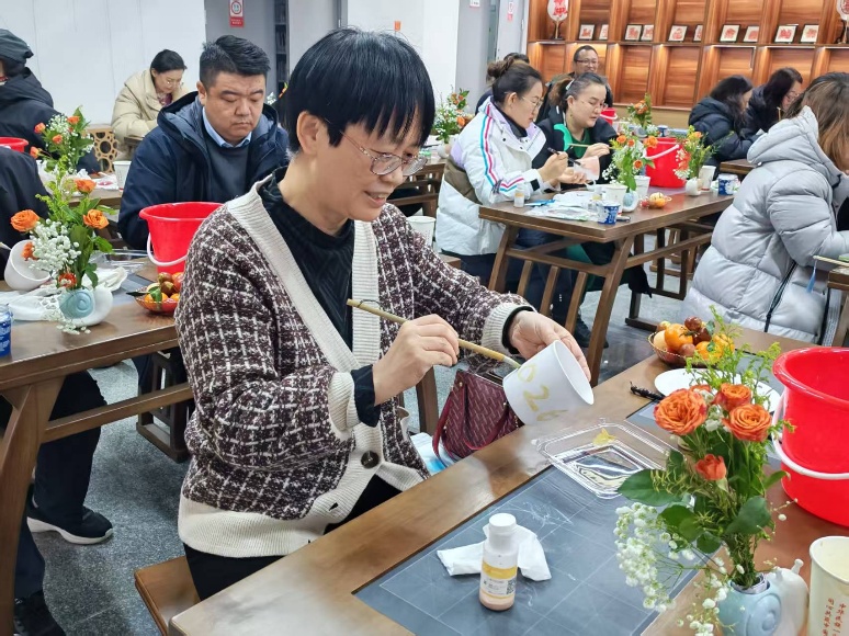 感受过视觉与听觉的盛宴后,活动进入非遗手工陶艺体验环节。参与者们在素坯杯子上,用心绘制自己喜爱的图案,或山水,或花鸟,或对新年的寄语,将个人的情感与创意融入一件件独特的陶艺作品之中。这个过程不仅是对传统手工艺的切身感知,更是静心凝神、陶冶情操的美好时光。
