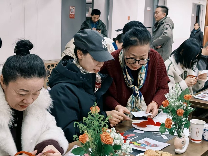 文学艺术学院副院长杜瑶向所有参加活动的老师致欢迎辞,音乐系学生屈长江的一首《山歌唱出好兆头》,拉开了活动的帷幕。体验非遗剪纸时,巧手翻飞间,一幅幅寓意吉祥的图案渐次成形。与此同时,音乐系的同学现场助兴,带来了清雅动人的古筝与琵琶演奏。琴韵泠泠,纸韵翩翩,传统音乐与剪纸艺术交相辉映,瞬间将大家带入一个宁静而富有诗意的文化空间。