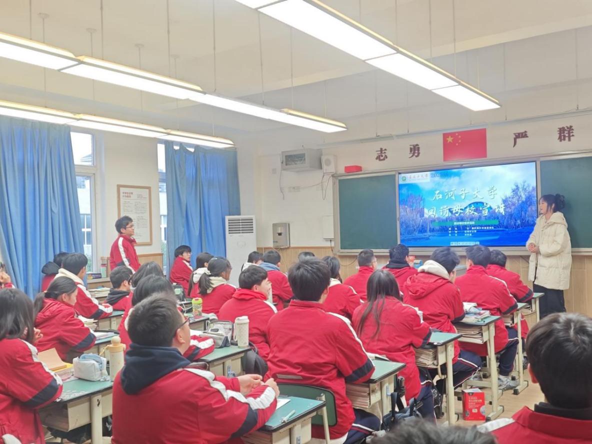 “站上讲台那一刻,看到台下专注的眼神,就像看到三年前埋头刷题的自己。能把我们在石大的真实生活讲给他们听,告诉他们‘远方并不遥远’,这趟回来值了。”宣讲队成员洪艺倩同学说。