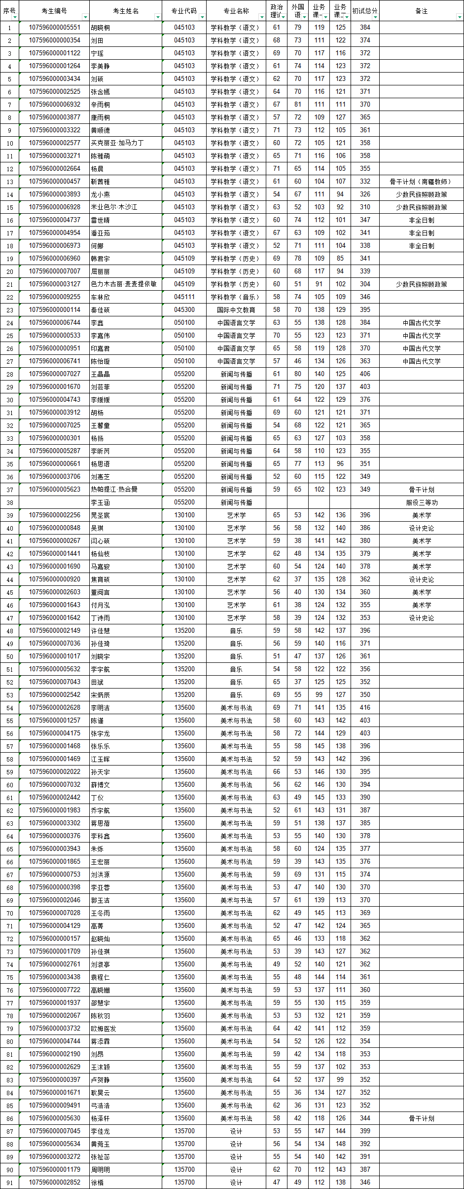 根据石河子大学2026年复试录取工作要求及“石河子大学文学艺术学院2026年硕士研究生复试录取工作实施细则”,现确定以下人员进入文学艺术学院2026年硕士研究生复试环节(一志愿)。现进行公示,公示时间:2026年3月22日――2026年3月28日。如有异议,请致电:0993-2055092。